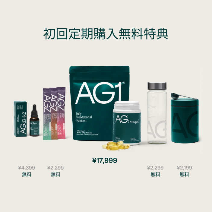 †18〜59歳の健康な成人を対象に、栄養バイオマーカー、マイクロバイオームの変化、バイオアベイラビリティを評価した臨床試験に基づきます。試験の設計や期間は異なります。詳しくは drinkag1.com/science をご覧ください。